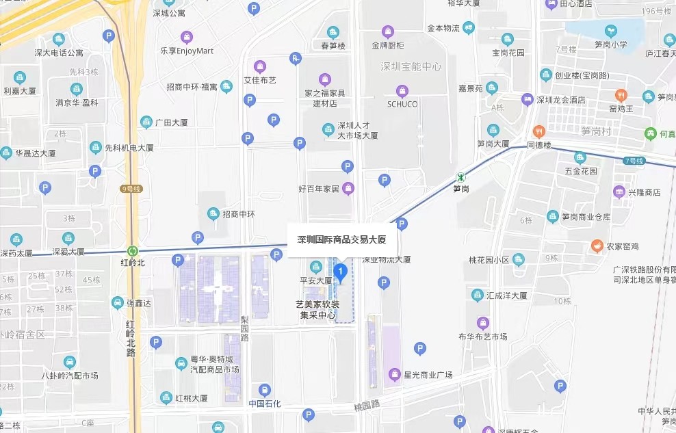 好百年家居(筍崗店),藝美家燈飾博覽中心。華海達國際服裝交易中心,筍崗工藝城,筍崗工藝城-三期,筍崗服裝批發中心,樂尚購物廣場,跳房子服飾批發市場,深圳市中港大藥房有限公司藥品批發展廳,筍崗工藝城-824棟