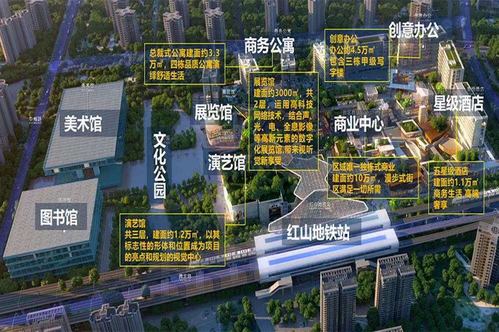 地鐵4號線、6號線紅山站無縫接駁,通達城市,全市稀缺的雙地鐵口物業,客流通達便捷,未來將通過雙地鐵匯聚全市客流