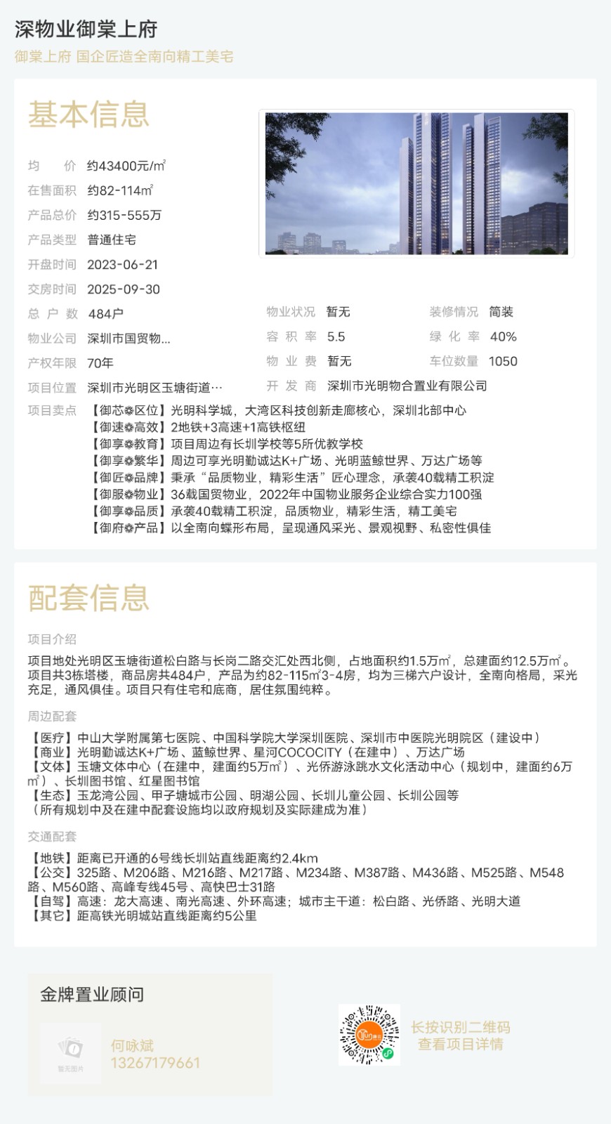 樓盤:深物業御棠上府物業類型:普通住宅戶型:3室、4室面積:約82-114平米總價:約315-555萬聯系人:何詠斌聯系電話:13267179661